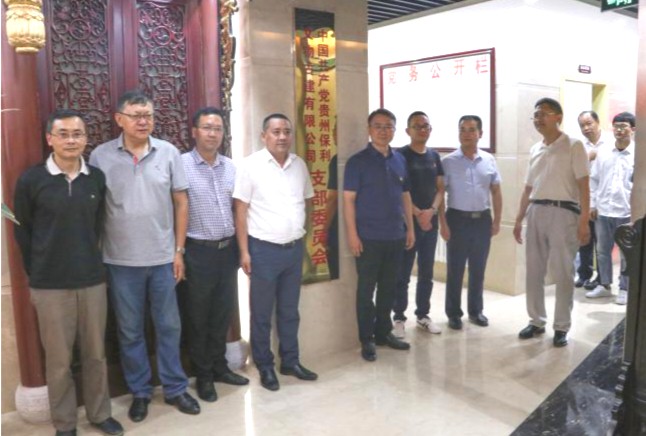 2020年6月16日下午,中国共产党贵州保利文物古建有限公司支部委员会成立大会在公司会议室隆重举行。应邀参加大会的领导及嘉宾有贵州省政协理论研究会副会长、民进贵州省委原副主委秘书长曾国强;民进贵州省委文化出版委员会副主任肖宇;贵阳市观山湖区观山街道办事处党工委书记宋毅、副书记王启祥,党建服务中心主任朱进,党建办负责人罗俊;贵州湖北商会秘书长吴进明;贵州保利文物古建有限公司董事长饶崇和做讲话。