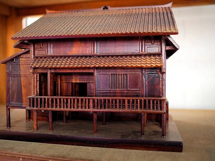 在文创产品生产车间,朱部长饶有兴趣的观察制作的苗族吊脚楼模型,详细询问这个文创产品是否按照实物比例制作?作为旅游纪念品进入市场能卖到多少钱……